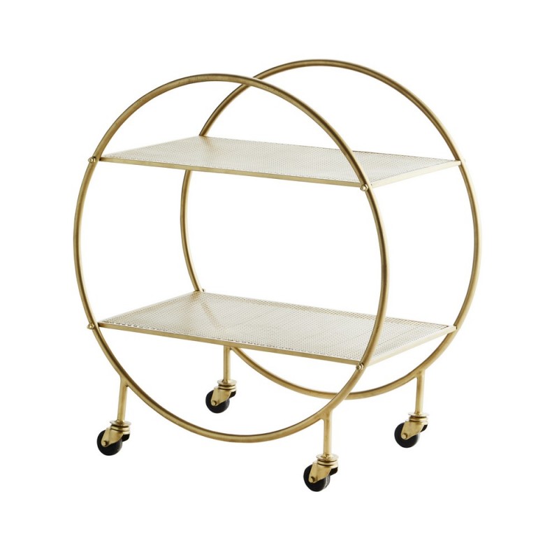 madam stoltz desserte a roulette ronde style vintage retro metal laiton 23486AB