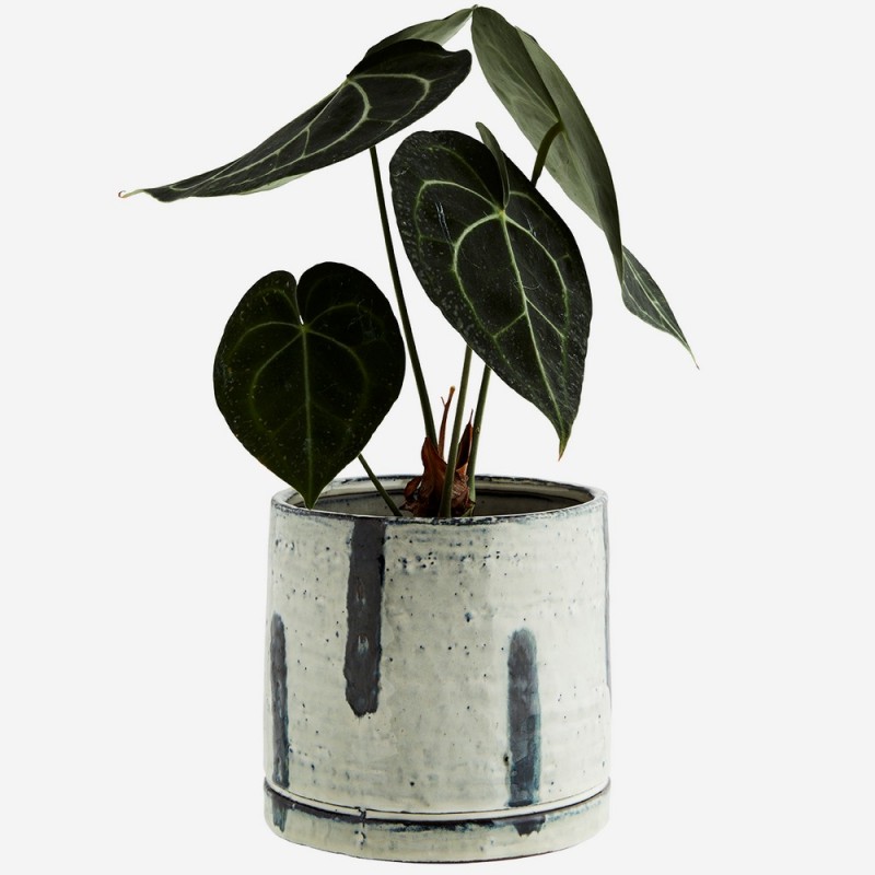 madam stoltz cache pot deco gres peint blanc bleu HY15008A-17