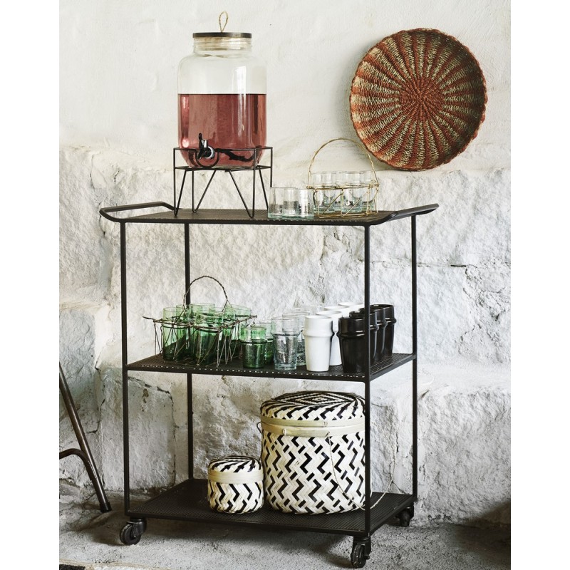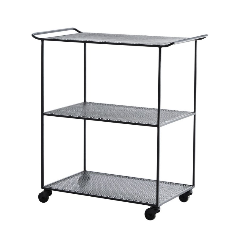 madam stoltz desserte a roulettes 3 plateaux metal noir perfore