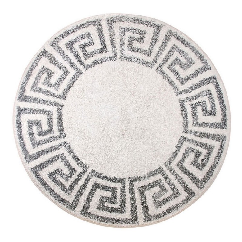 hk living tapis rond antiderapant 120 cm motif grec ecru gris ttk3040