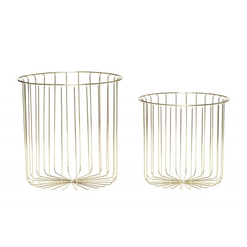 hubsch set de 2 paniers design en fil metallique laiton 940618