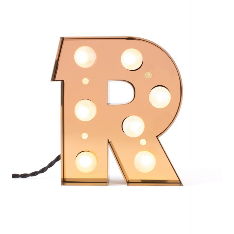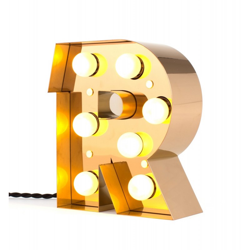 lampe de table applique lettre lumineuse r led dore seletti caractere