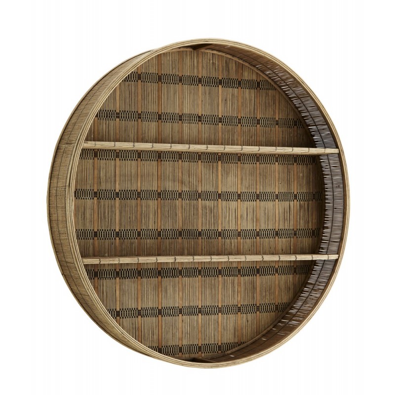 madam stoltz grande etagere murale ronde bambou tresse bois fonce
