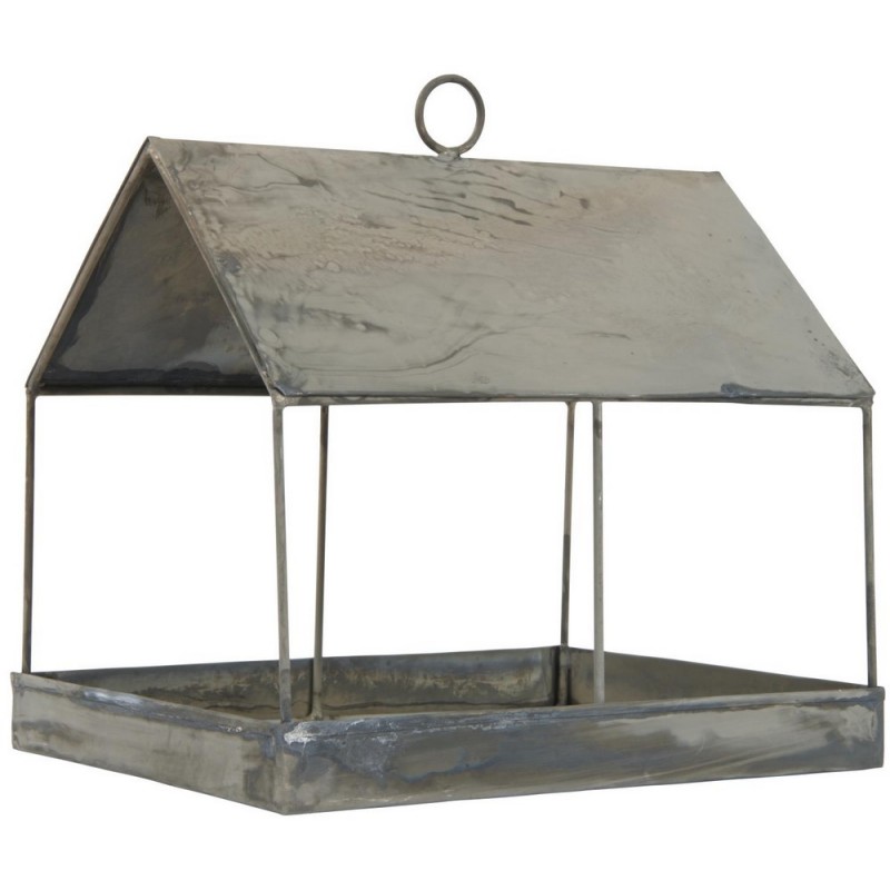 mangeoire pour oiseaux forme de maison metal gris vintage