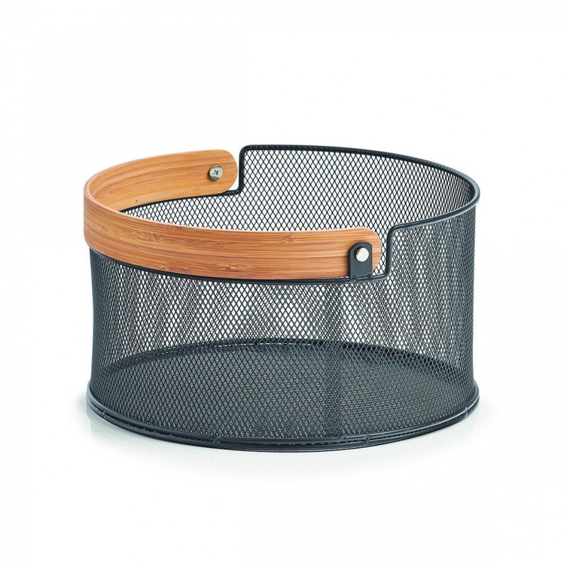 panier a fruits rond design metal noir poignee bois bambou zeller