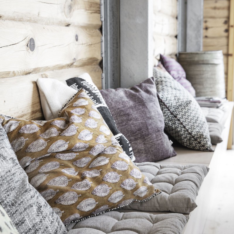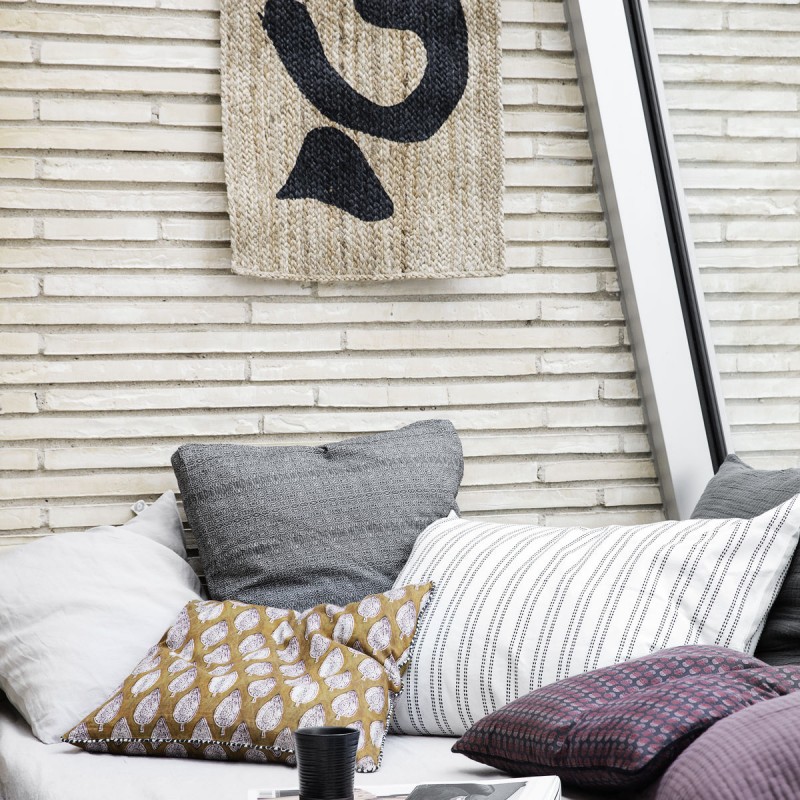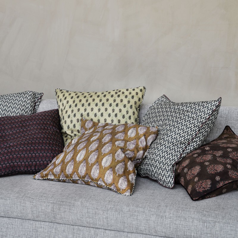 house doctor housse de coussin motif parsley toucher doux moutarde