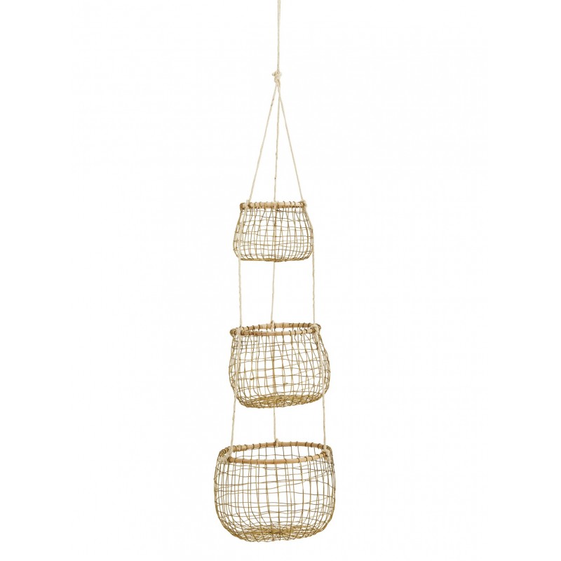 madame stoltz rangement 3 paniers suspendus fil metallique laiton dore