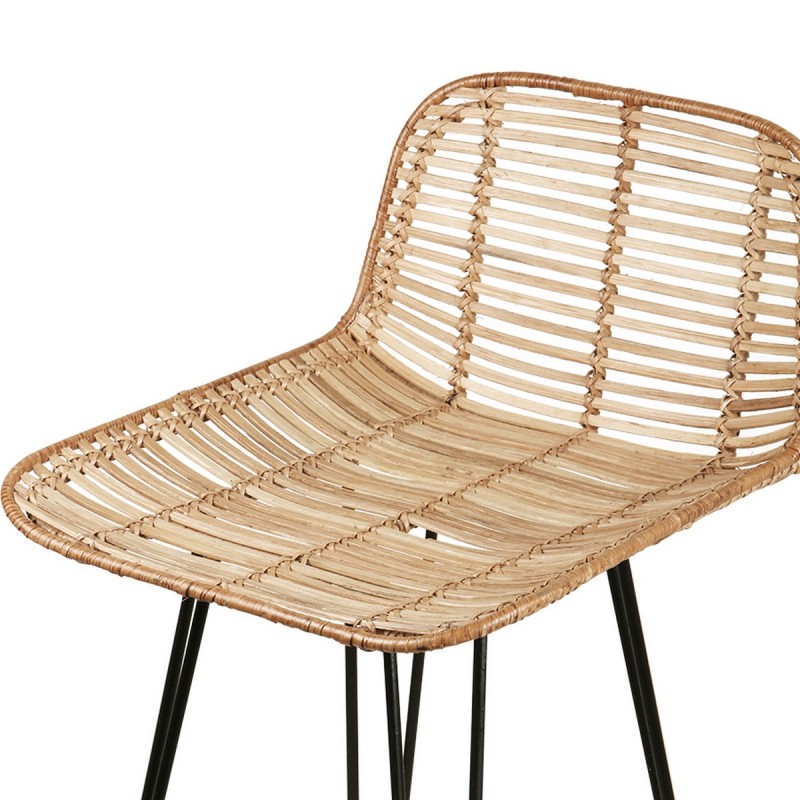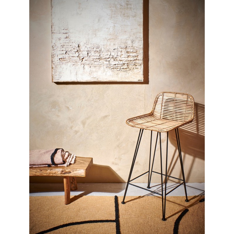 hk living tabouret de bar rotin nature metal noir