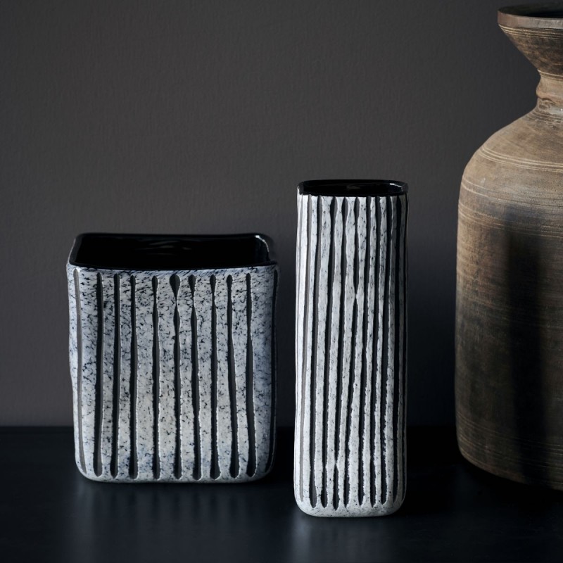 house doctor surat vase vertical carre rayures gris noir