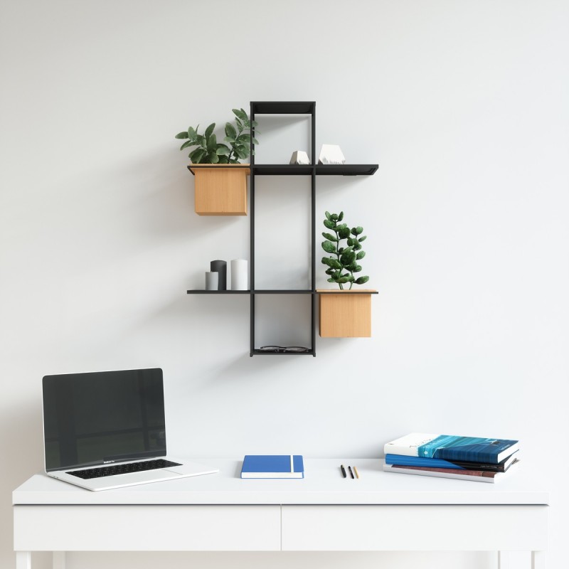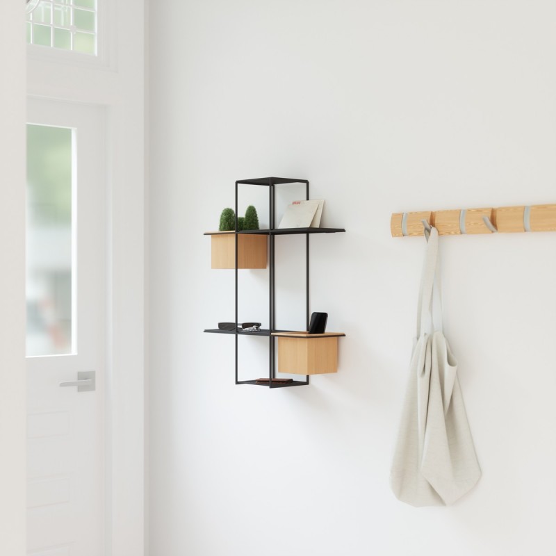 umbra cubist etagere murale design metal noir 2 porte plantes bois