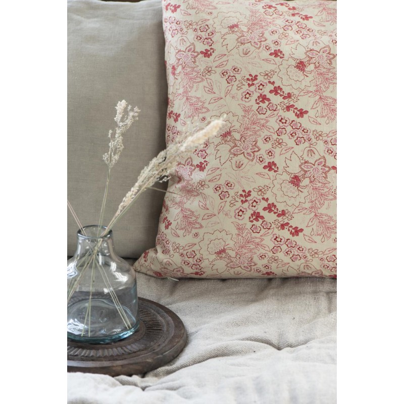 ib laursen housse de coussin coton beige imprime fleuri rouge