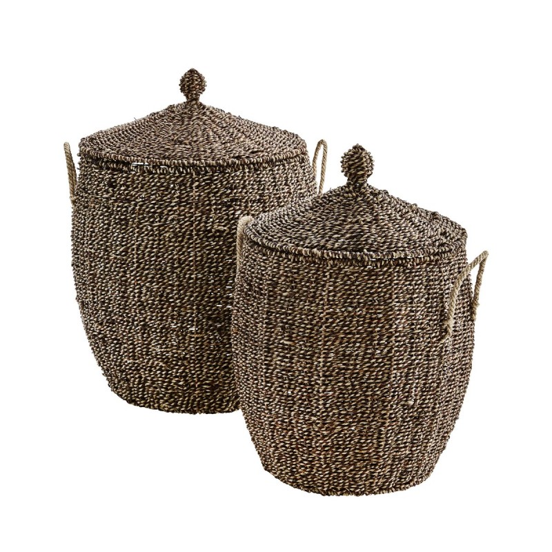 madam stoltz 2 grands paniers avec couvercle jonc de mer tresse