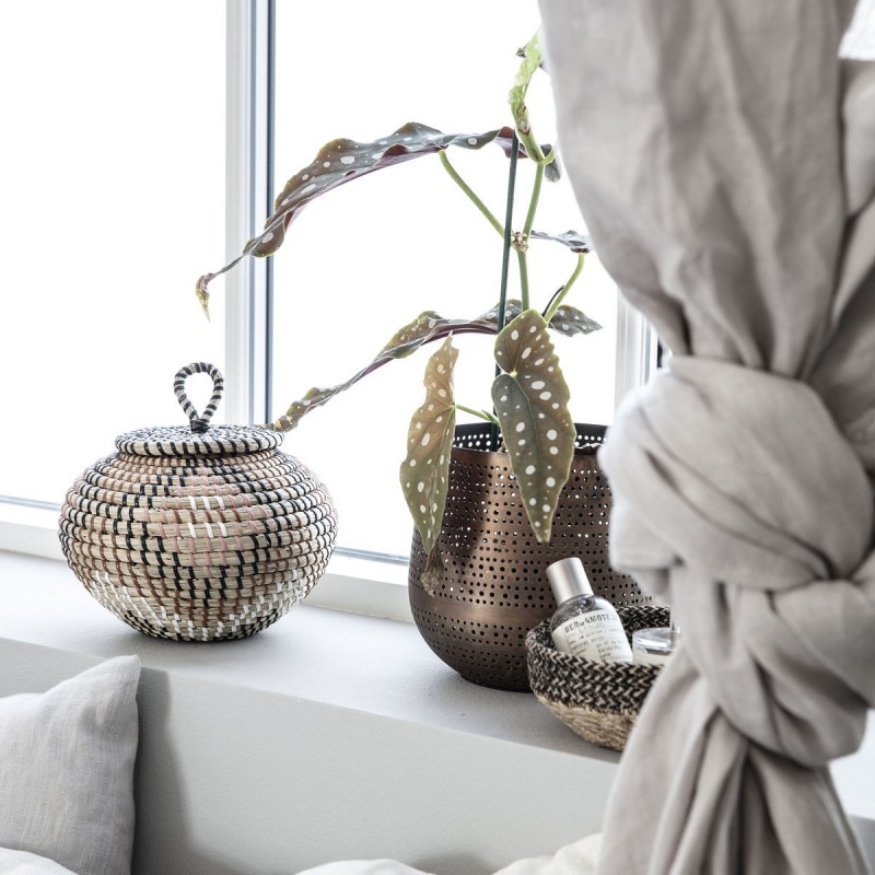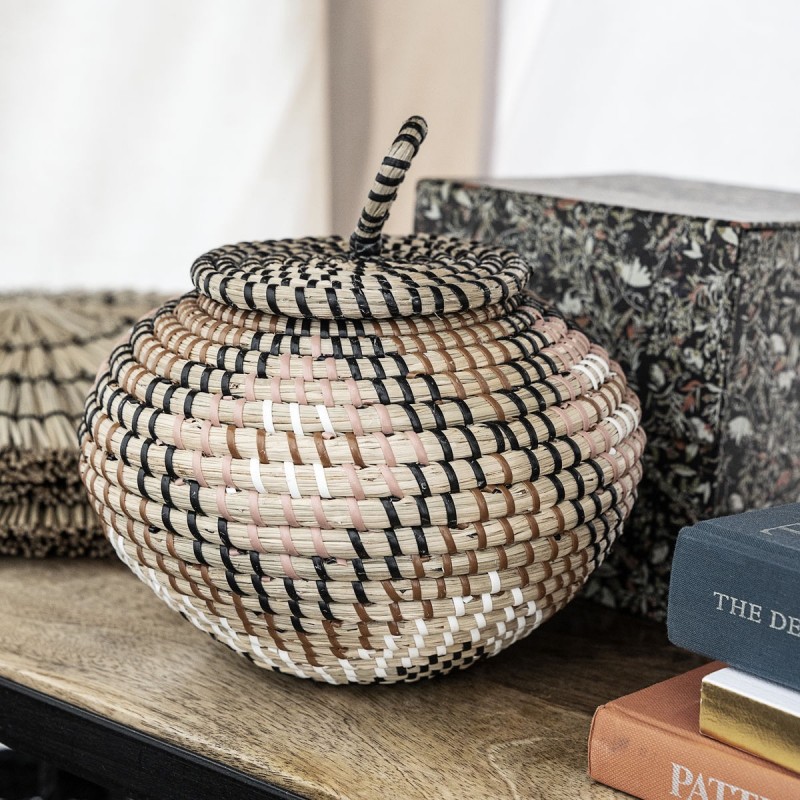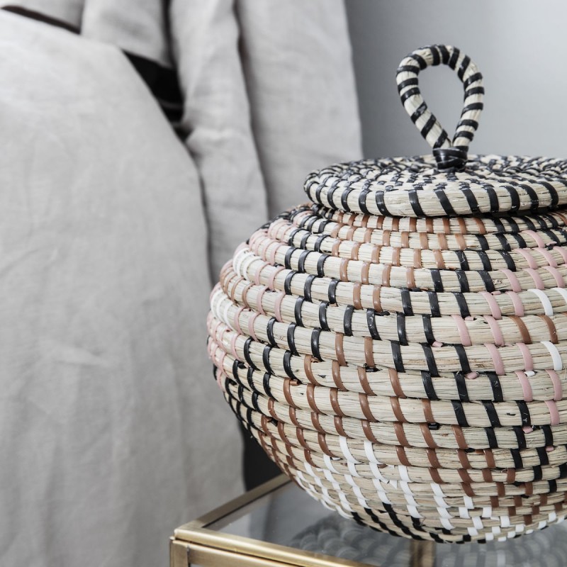 house doctor boite ronde avec couvercle jonc de mer tresse multicolore