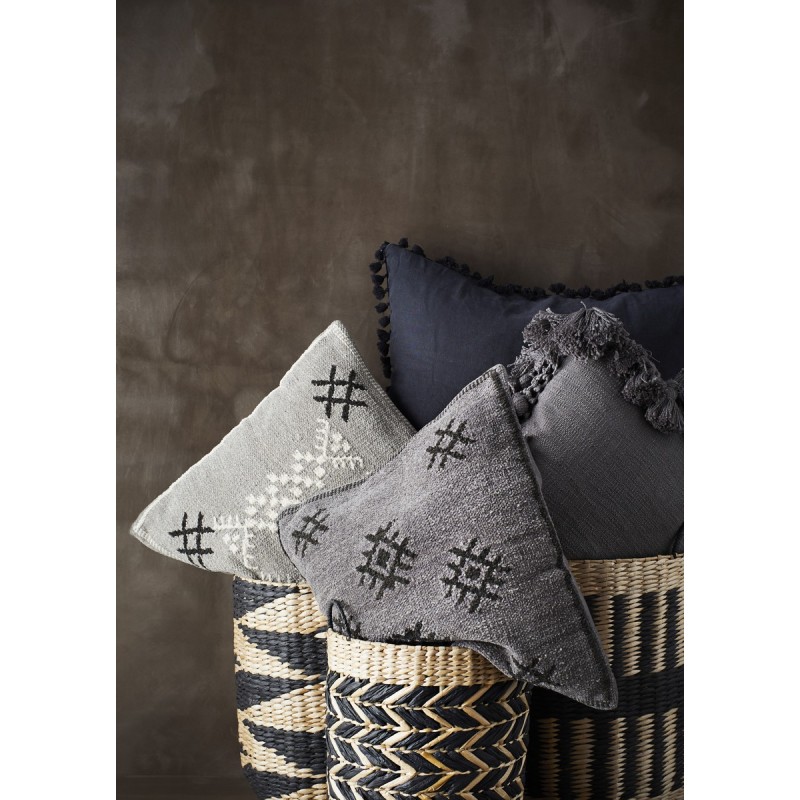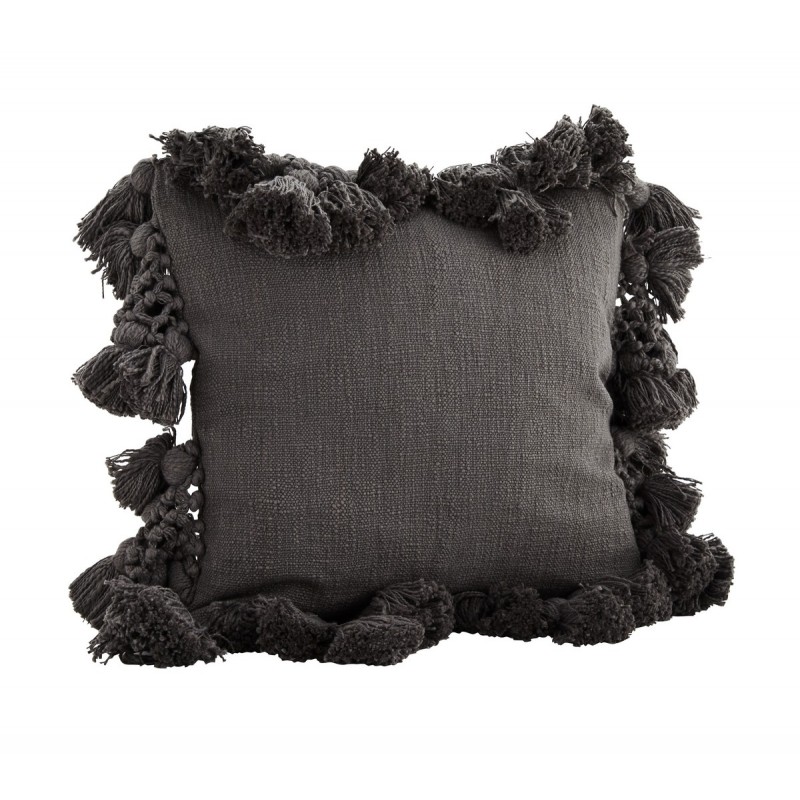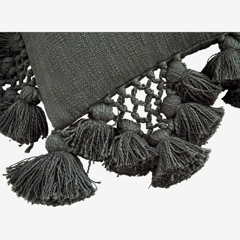 madam stoltz housse de coussin carre pompons tassels 45 x 45 cm gris