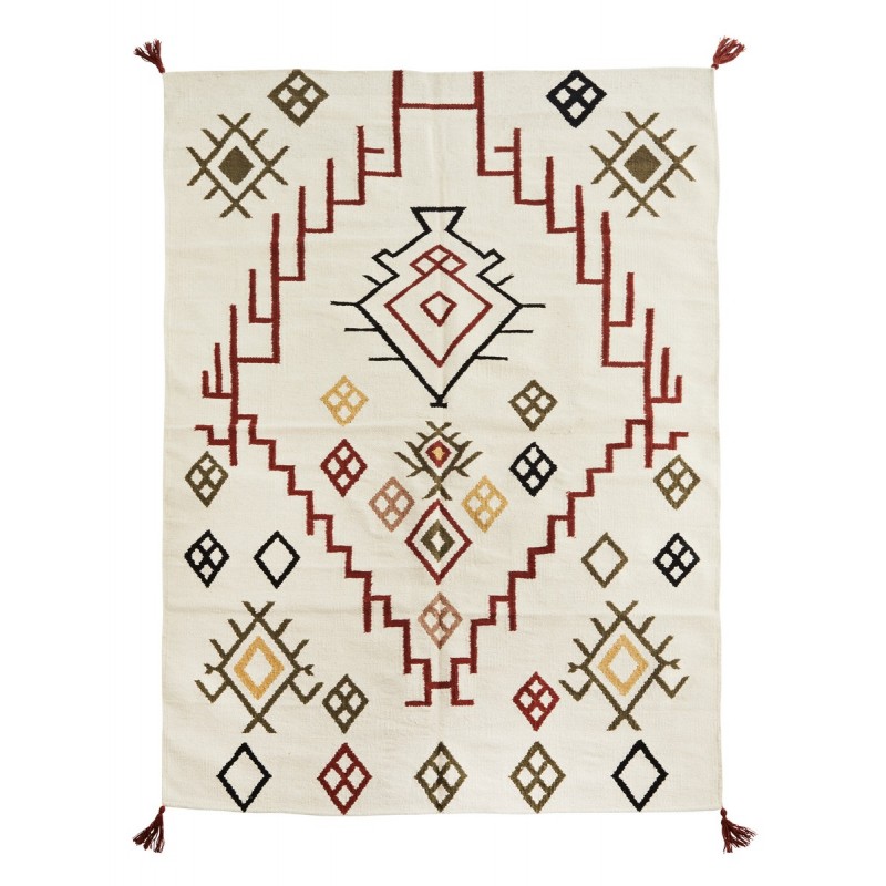 madam stoltz tapis blanc broderie style ethnique multicolore