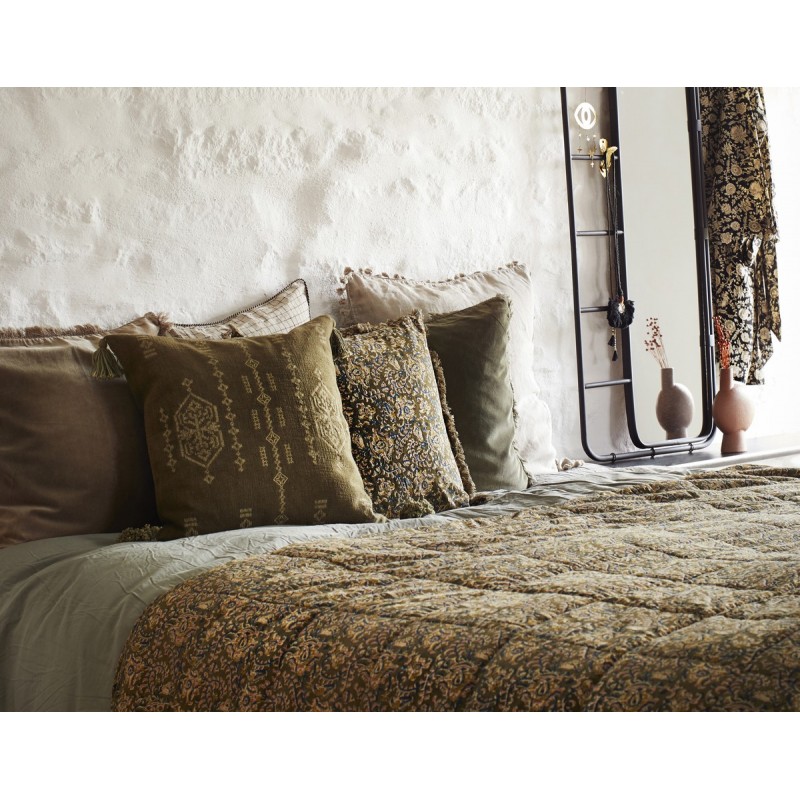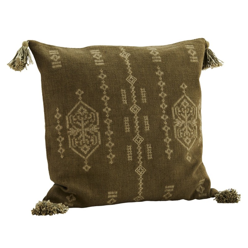 madam stoltz housse de coussin carre style ethnique brode pompons vert
