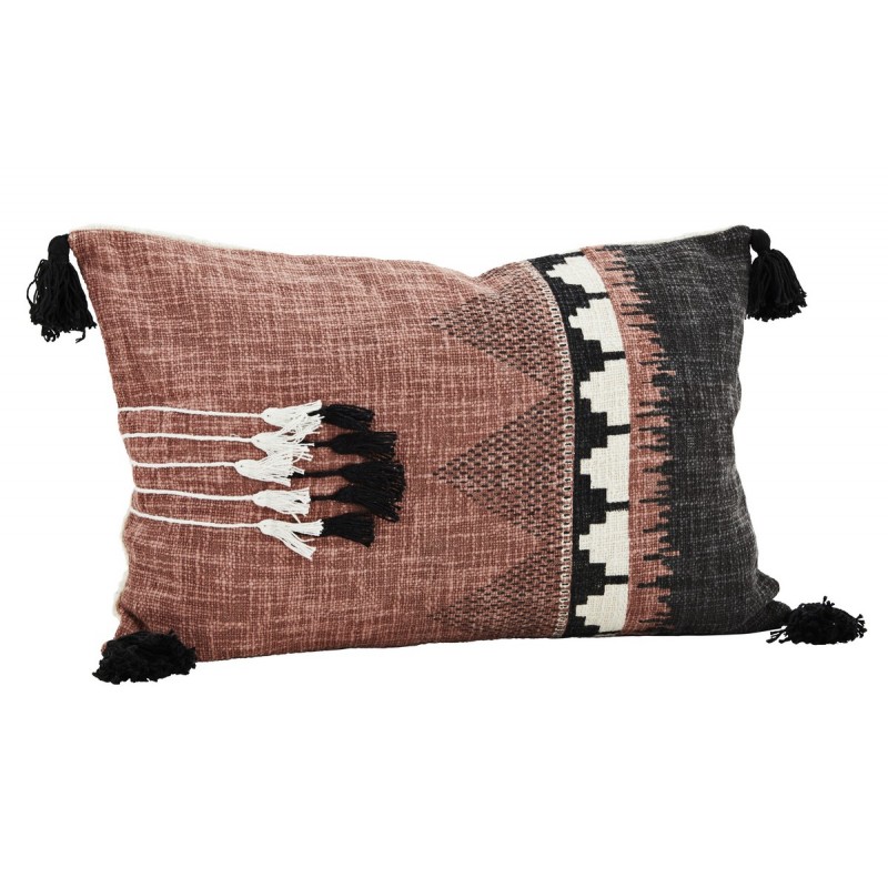 madam stoltz housse de coussin coton broderie motif ethniques pompons