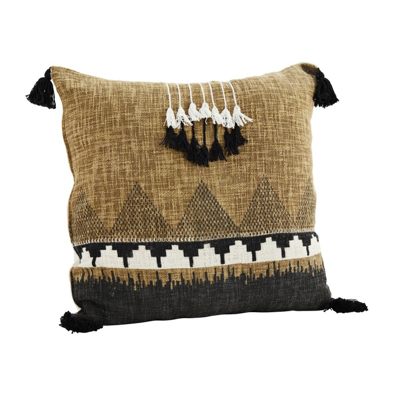 madam stoltz housse de coussin carre ethnique vert pompons coton vert