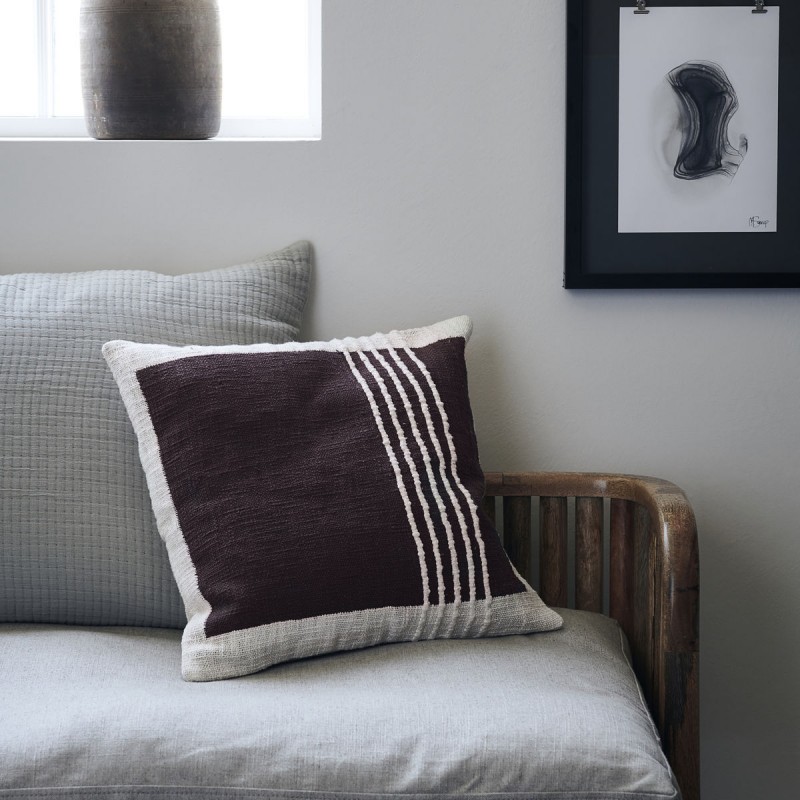 house doctor yarn housse de coussin rayures coton marron 50 x 50 cm