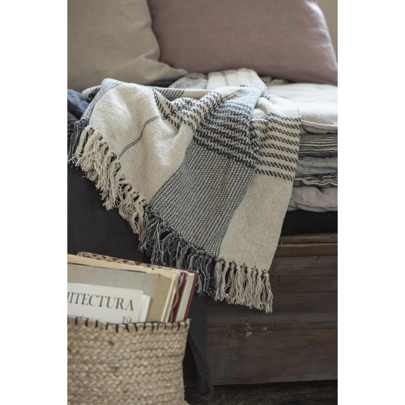 ib laursen plaid coton grands carreaux ecru bleu