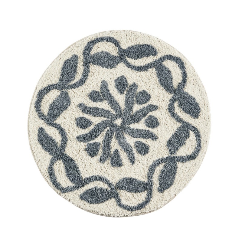 tapis de bain decoratif rond coton tufte bleu madam stoltz