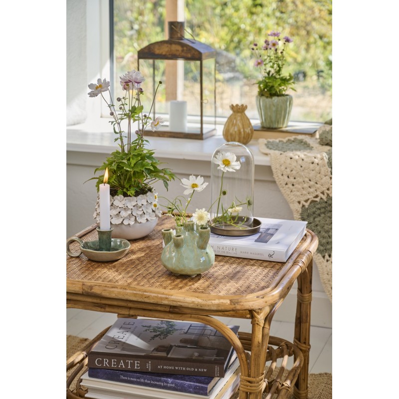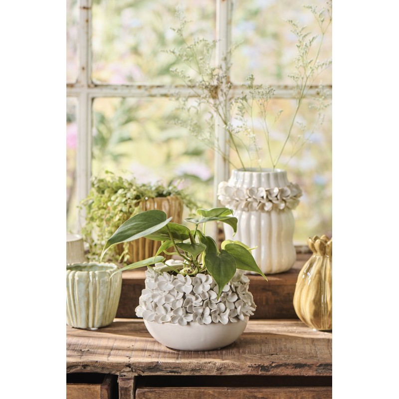 cache pot deco gres emaille blanc fleurs sculptee relief 3d ib laursen