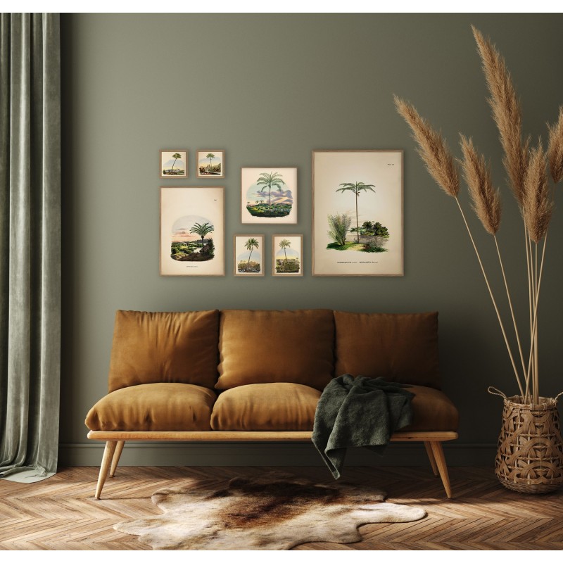 L’illustration "Palmarum II", minutieusement imprimée au Danemark, représente une variété exotique de palmier dans un style botanique vintage, riche en détails et en finesse.