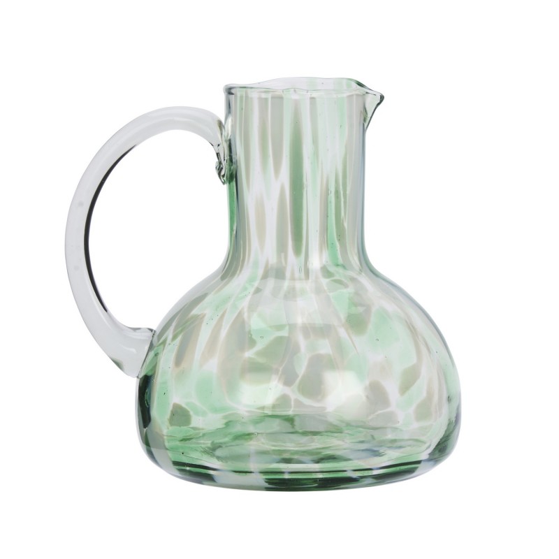 Motifs ondulés dans des tons verts doux, évoquant les reflets de l’eau. Parfaite pour servir eau, citronnade, thé glacé… ou simplement décorer une étagère.