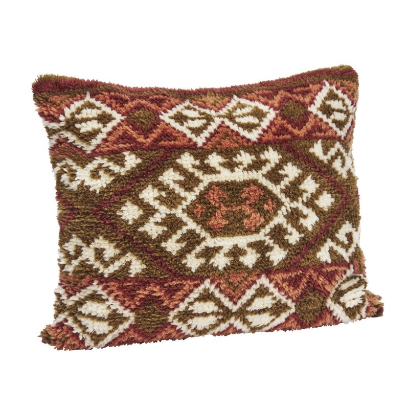 Ses motifs ethniques et sa palette de bruns, rouilles et crèmes évoquent les terres lointaines et les objets qui ont une histoire. Le tout dans un format généreux, idéal pour créer un coin cosy ou transformer un canapé.
