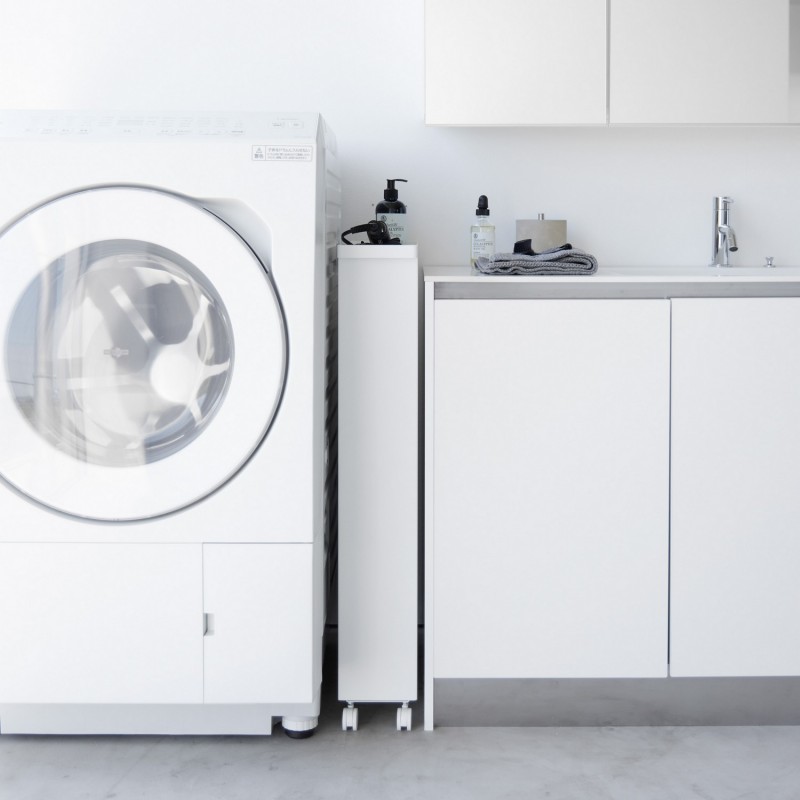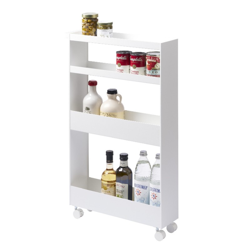 Le meuble étroit à roulettes Yamazaki Tower est la solution idéale pour tirer parti des moindres recoins de votre intérieur.
