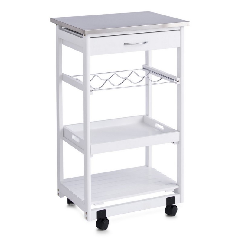 Ajoutez une touche d’élégance et de fonctionnalité à votre cuisine avec la desserte à roulettes Zeller. Ce meuble en bois blanc élégant est équipé d’un plateau en acier inoxydable, offrant une finition moderne et durable.