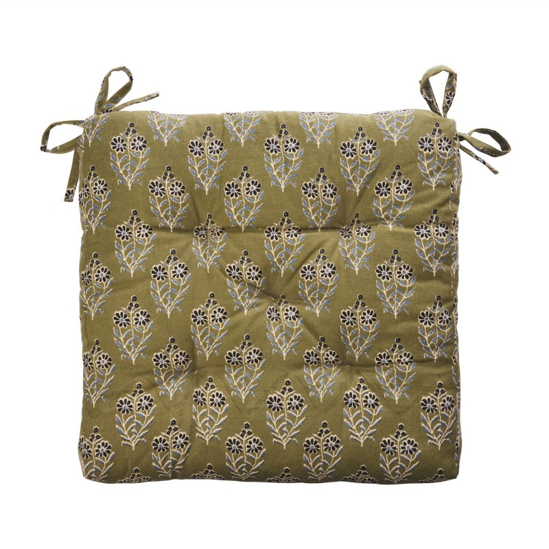 Confectionnée en coton doux de belle qualité, cette galette carrée (45 x 45 cm) arbore de subtils motifs dans des tons verts et apaisants, idéales pour créer une atmosphère décontractée mais raffinée.