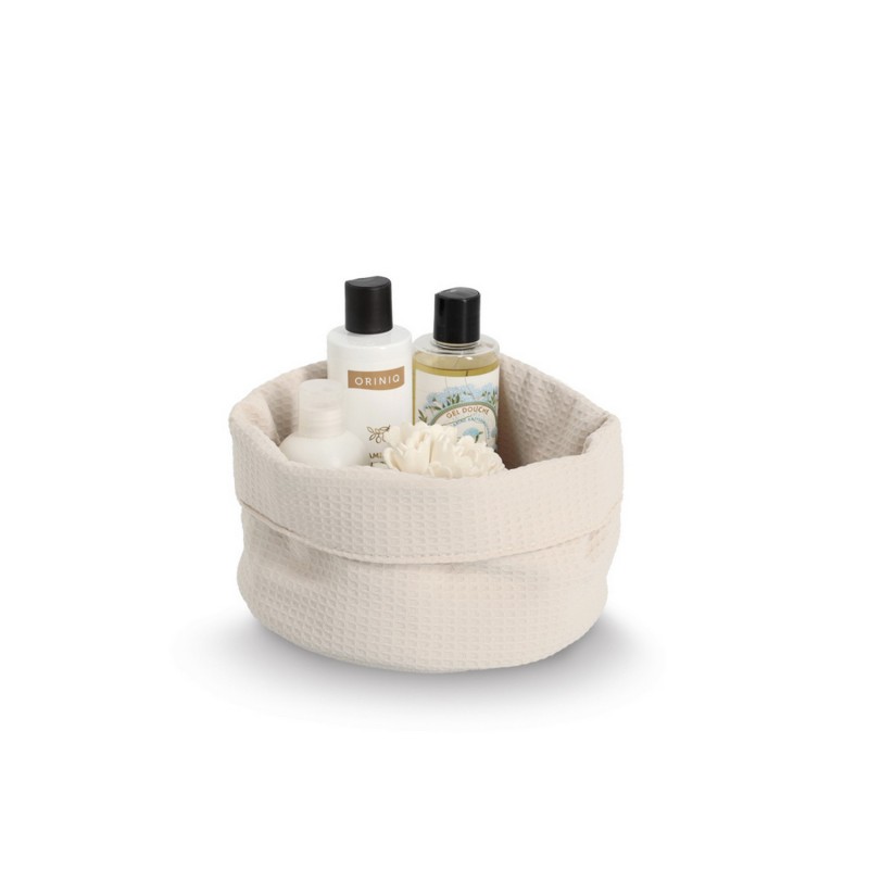 Fabriquée en tissu gaufré doux et résistant, elle allie praticité et esthétique minimaliste. Sa matière souple permet un rangement facile et modulable.