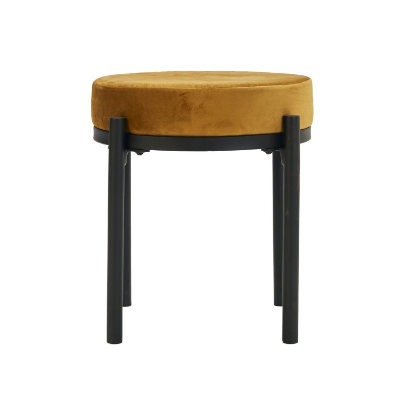 Le velours somptueux ajoute une touche élégante et fait ressortir la profondeur et le fond doré de la couleur olive foncé. Le tabouret est idéal comme siège supplémentaire autour d'une table à manger et pourrait même servir de détail décoratif dans le couloir ou la chambre.