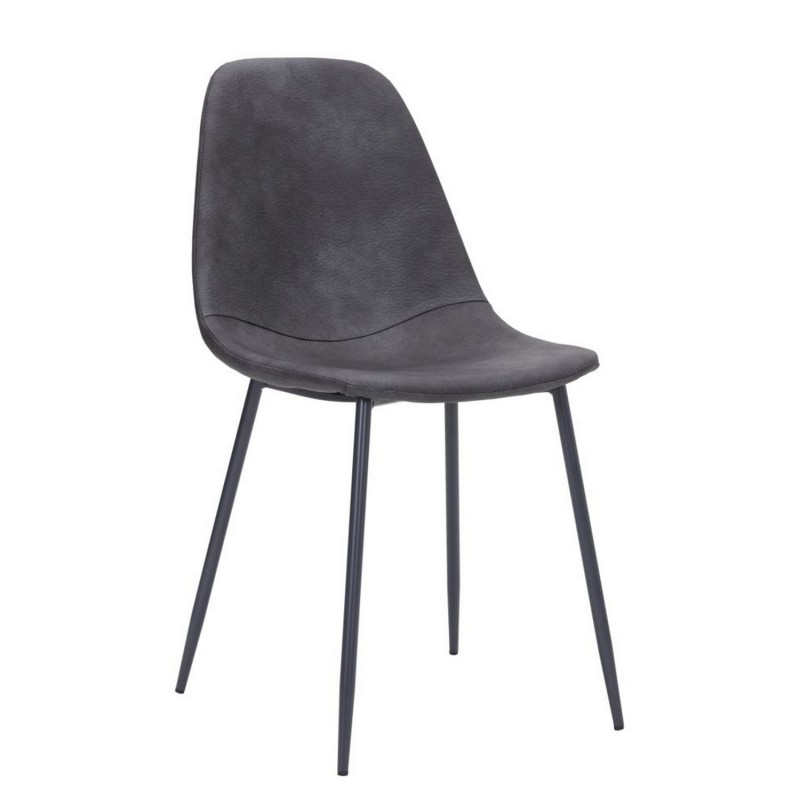 Les pieds fins évasés en acier noir apportent de la légèreté et d'élégance à une chaise très confortable réalisée en mousse et un revêtement en similicuir.