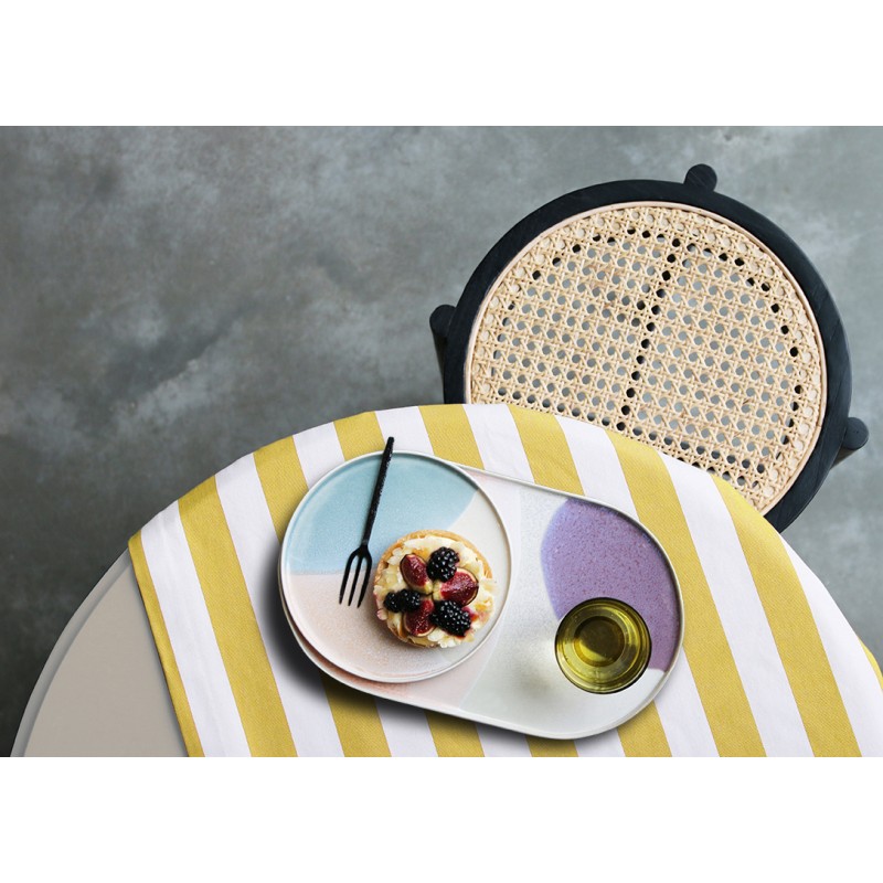 Inspirés du design arrondi des années 80 HK Living a créé un mélange ludique de vaisselle de forme organique dans des teintes poudrées rose, mauve, bleue et jaune ensoleillée.