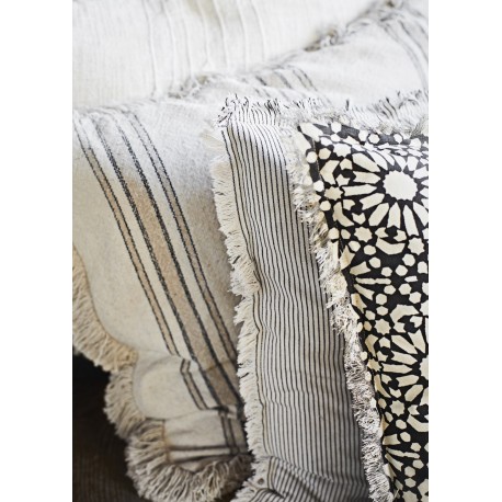 Grande housse de coussin Madam Stoltz réalisée coton recyclé. Avec ses jolies franges, cette housse de coussin sera parfaite pour apporter une touche de douceur et un esprit boho chic à la décoration de votre salon ou chambre.
