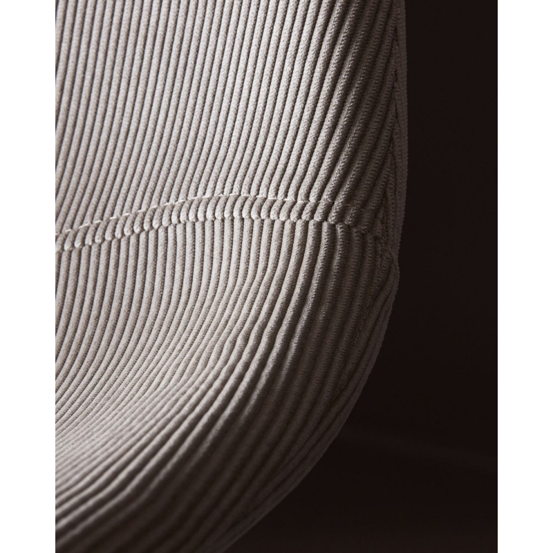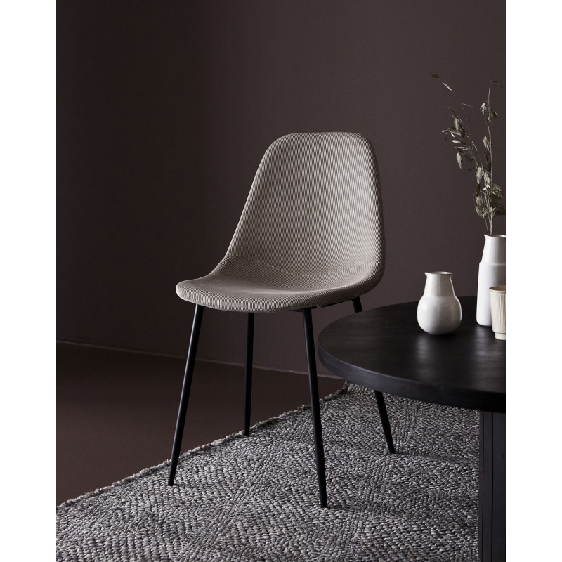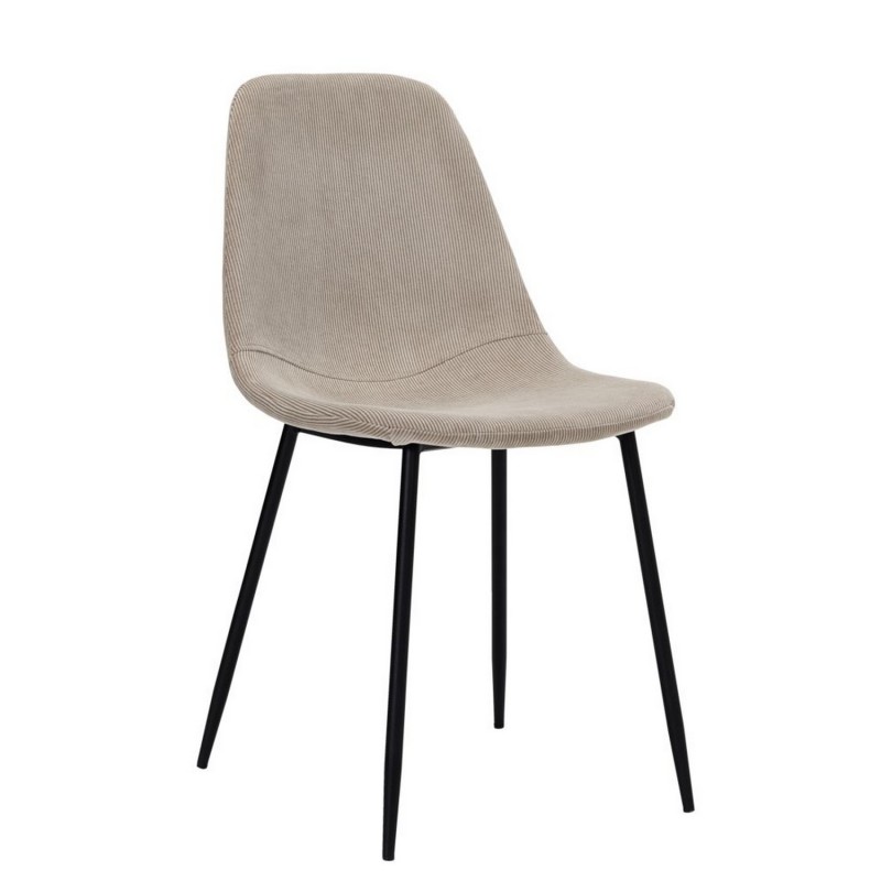 Les pieds fins évasés en acier noir apportent de la légèreté et d'élégance à une chaise très confortable réalisée en mousse et un revêtement en velours côtelé.