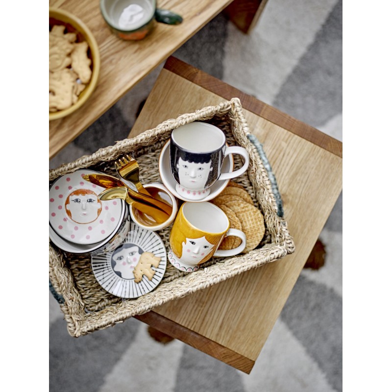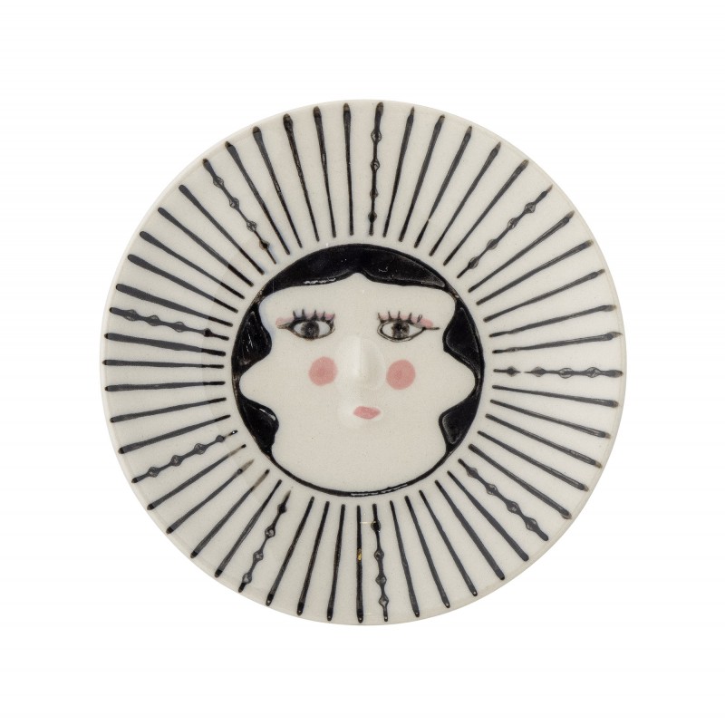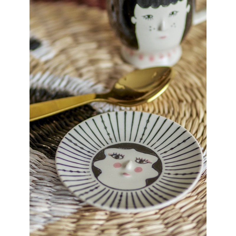 Jolie petite assiette fantaisie Jaya de Bloomingville MINI peinte à la main avec une représentation d'une femme et de délicats détails faits à la main. Chaque assiette sera unique, car chaque coup de pinceau ajoutera une touche personnelle et créera de légères variations dans le design.