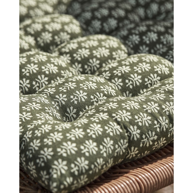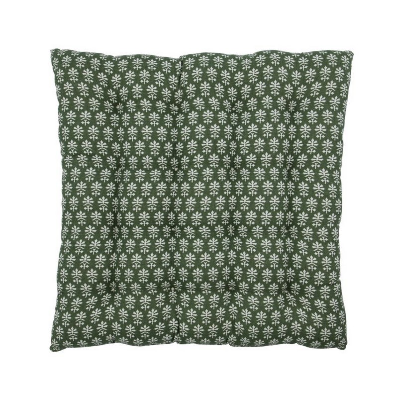 Apportez du confort à votre assise avec ce coussin de chaise carré HDBloss de House Doctor. Joli motif floral discret sur fond vert, un look classique indémodable.