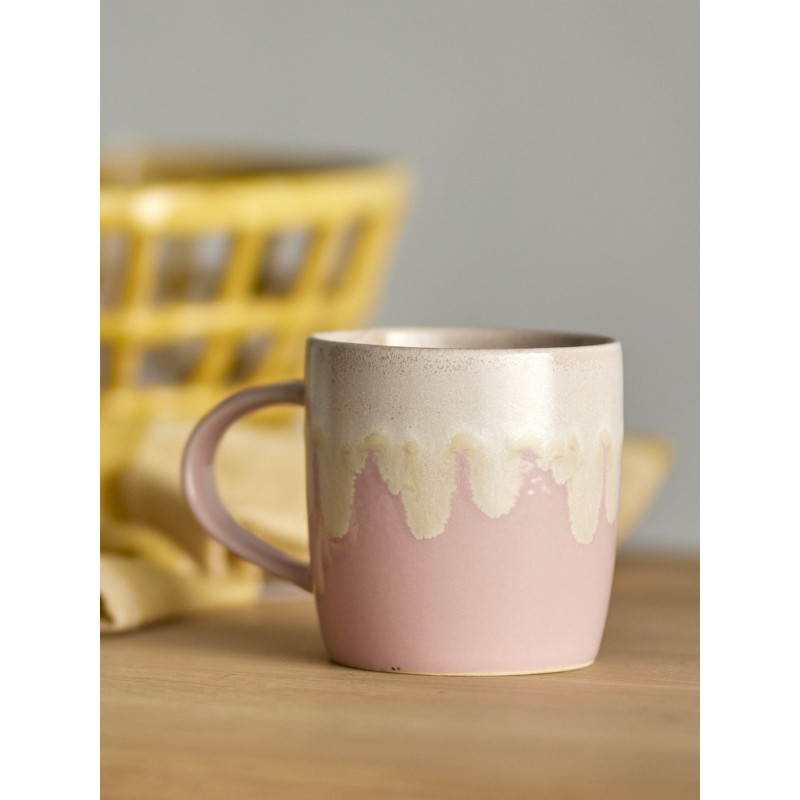 Réalisée en grès émaillé d'une teinte rose poudré douce et élégante, chaque tasse est unique, avec des variations naturelles qui lui confèrent un charme particulier.