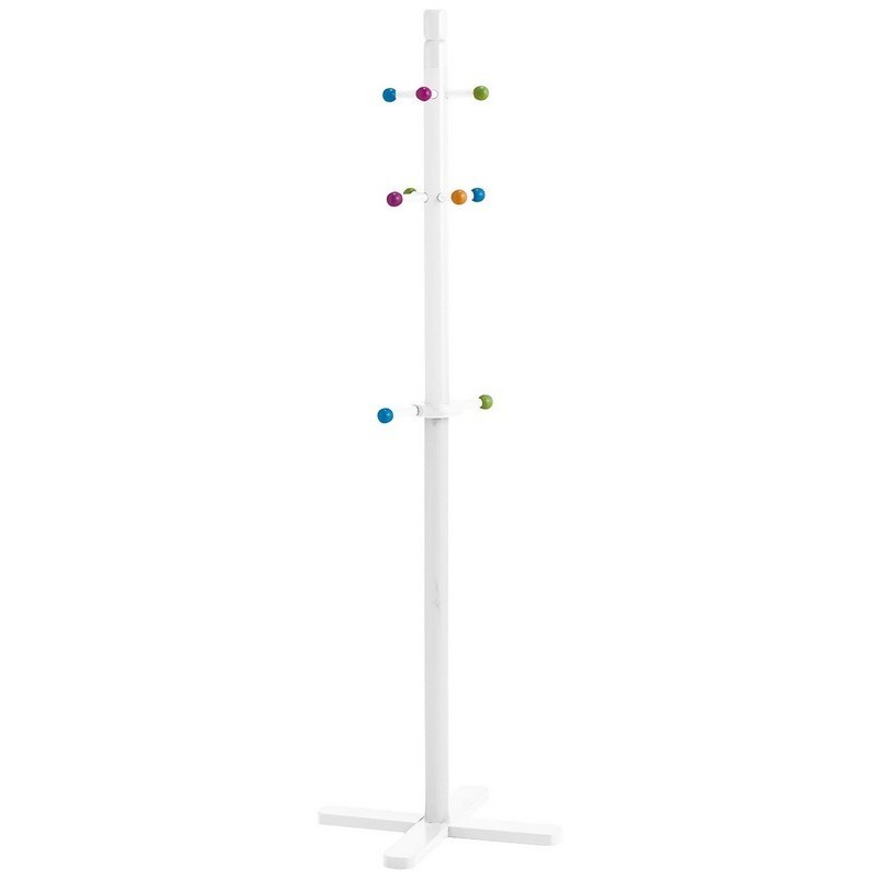 Porte-manteau sur pied chambre enfant bois blanc boules multicolores Zeller