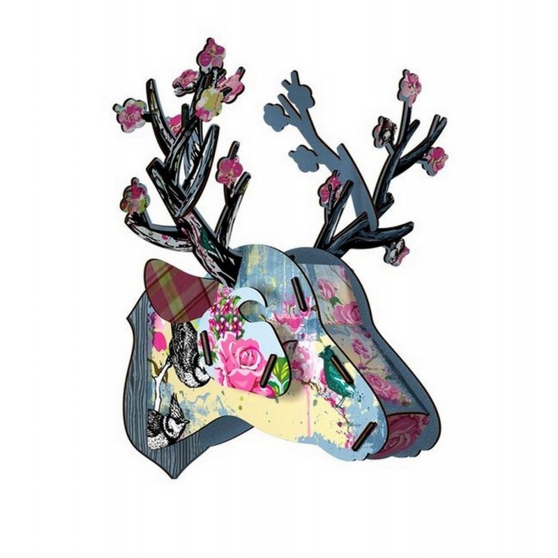 Le produit emblématique de la marque Miho Unexpected Things, la tête de cerf trophée mural est fabriquée en Allemagne avec des matières écologiques telles que le bois MDF recyclé, papier et des colorants non toxiques.