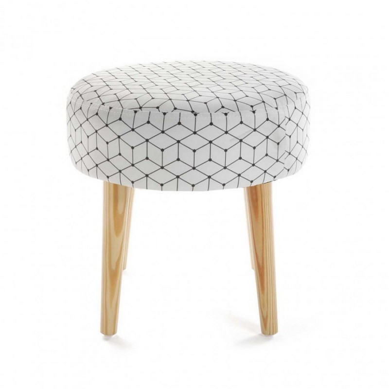 Tabouret rond tissu scandinave 4 pieds bois Versa Tropical