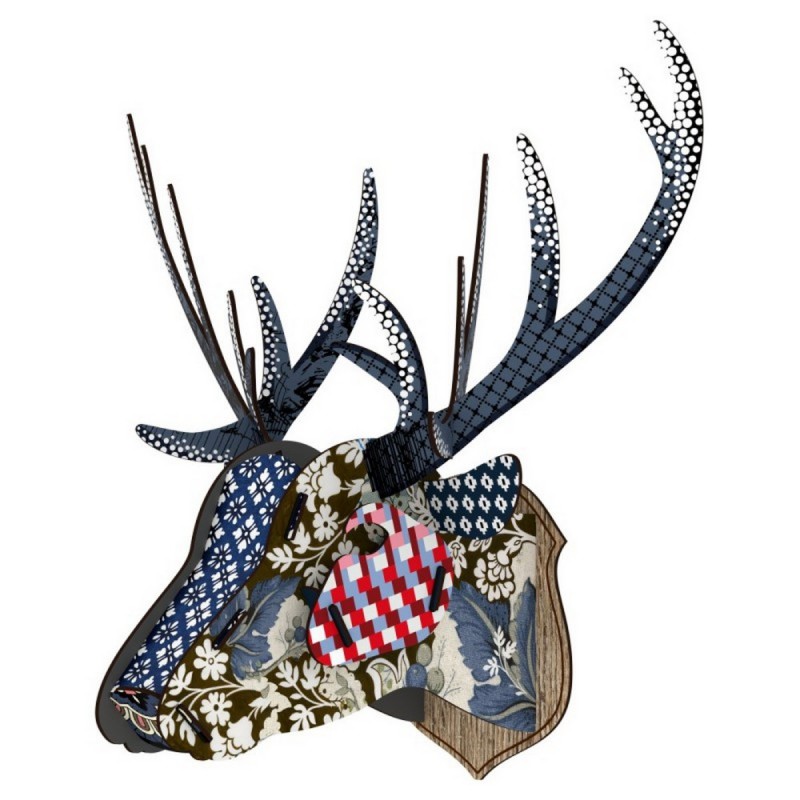 Le produit emblématique de la marque Miho Unexpected Things, la tête de cerf trophée mural est fabriquée en Allemagne avec des matières écologiques telles que le bois MDF recyclé, papier et des colorants non toxiques.