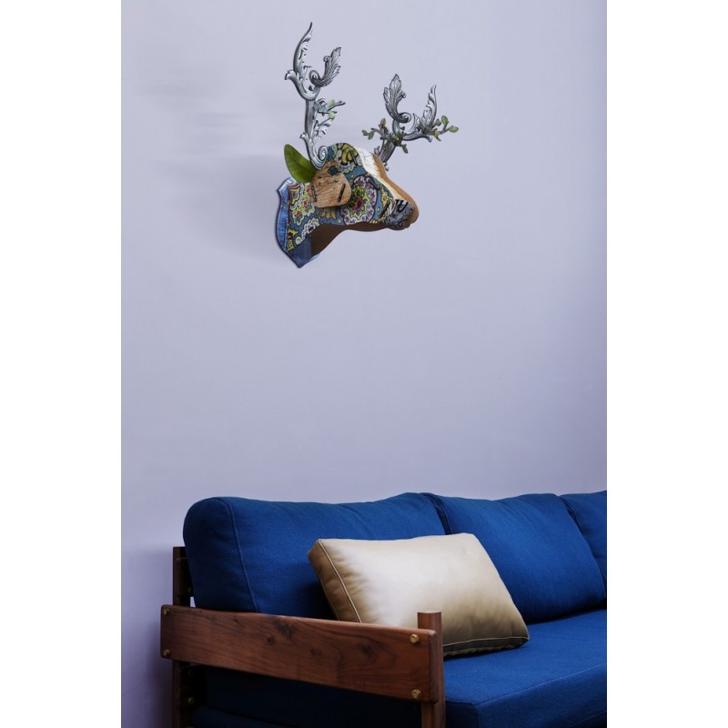 Le produit emblématique de la marque Miho Unexpected Things, la tête de cerf trophée mural est fabriquée en Allemagne avec des matières écologiques telles que le bois MDF recyclé, papier et des colorants non toxiques.