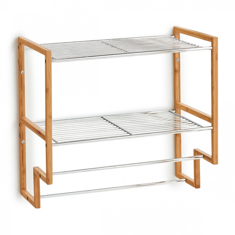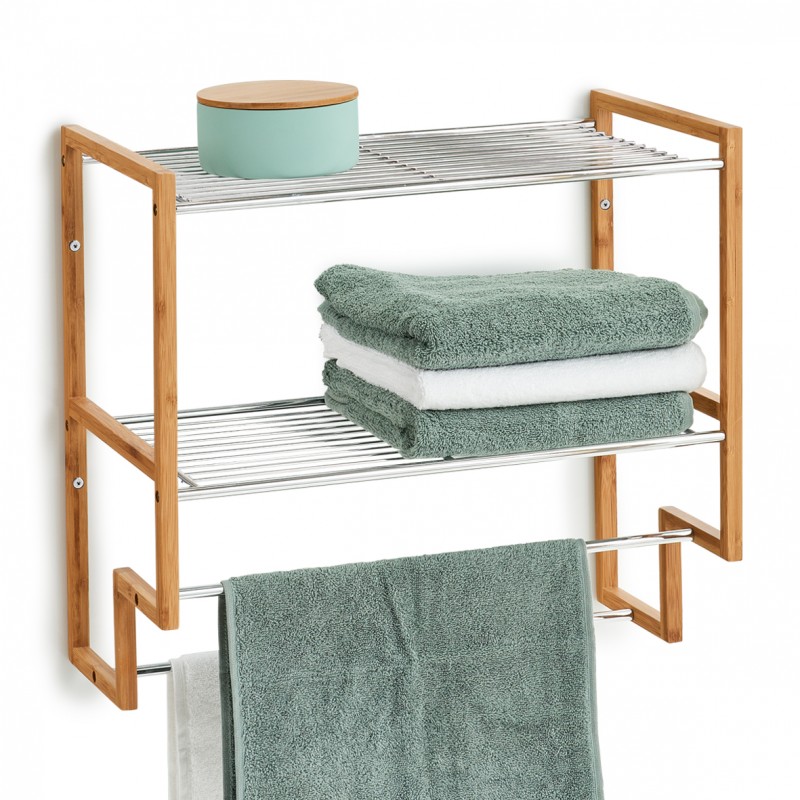 Porte-serviettes mural 2 étagères métal bois bambou Zeller