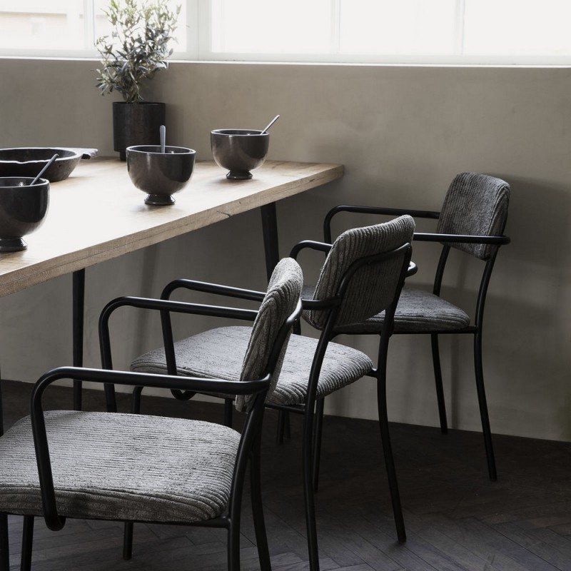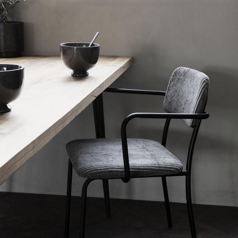 Acier noir, velours côtelé (polyester, nylon)