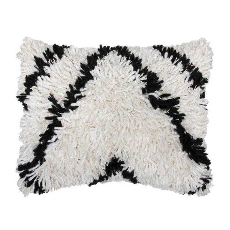 Coussin rectangulaire à poil long fourrure blanc noir HK Living
