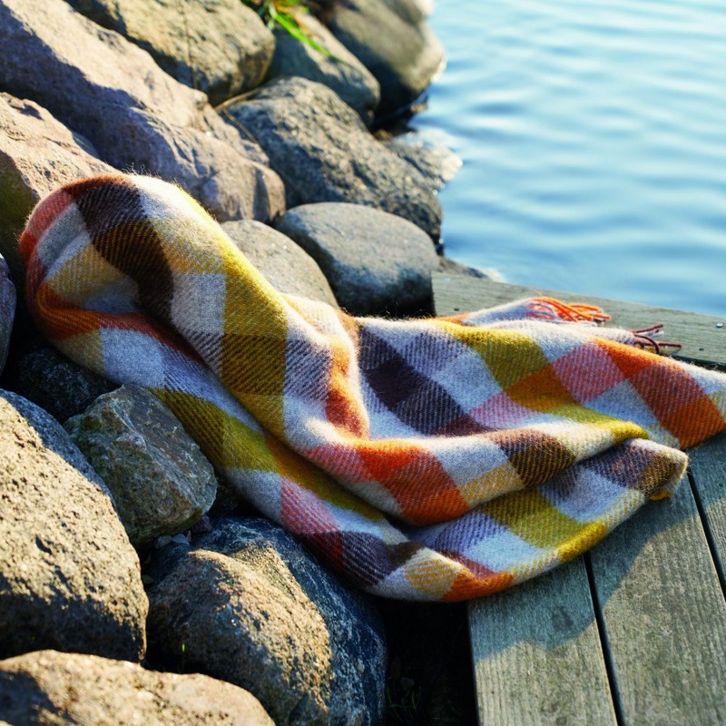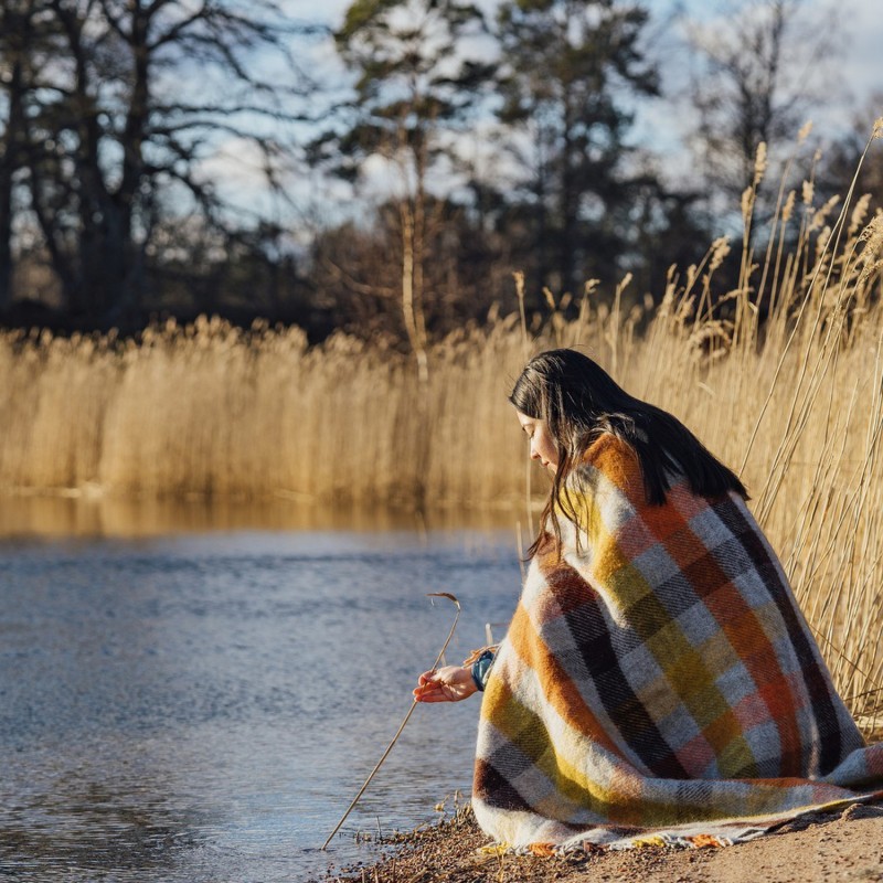 Réchauffez-vous avec le plaid Gotland Multi Klippan, un classique fabriqué à2 5% laine Gotland et 75% laine d'agneau.
